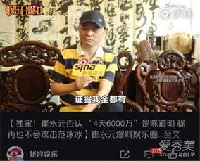 近年来,崔永元在娱乐圈的爆料引起了广泛关注。他不仅揭露了娱乐圈的种种乱象,还曝光了不少明星夫妻的婚姻状况。这些爆料让人们对明星夫妻的生活有了更深入的了解。
